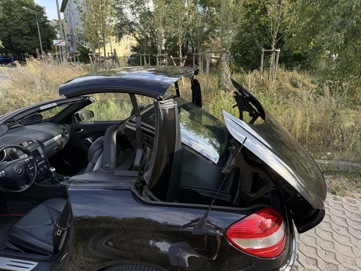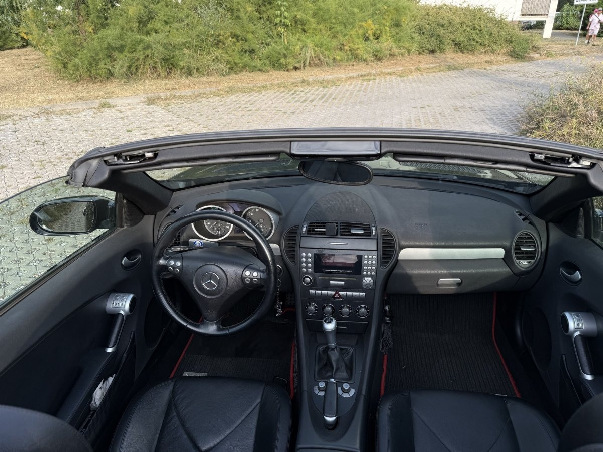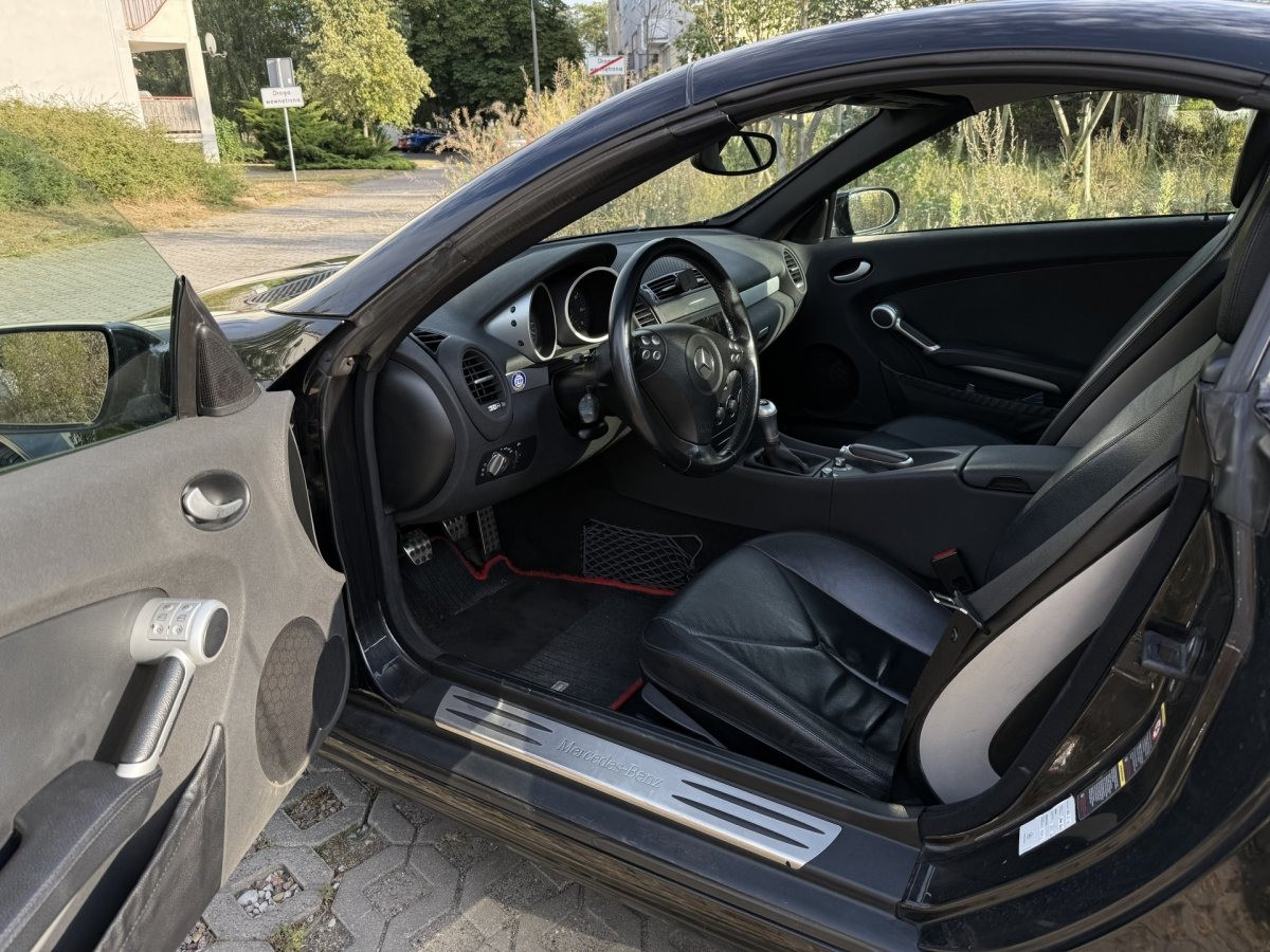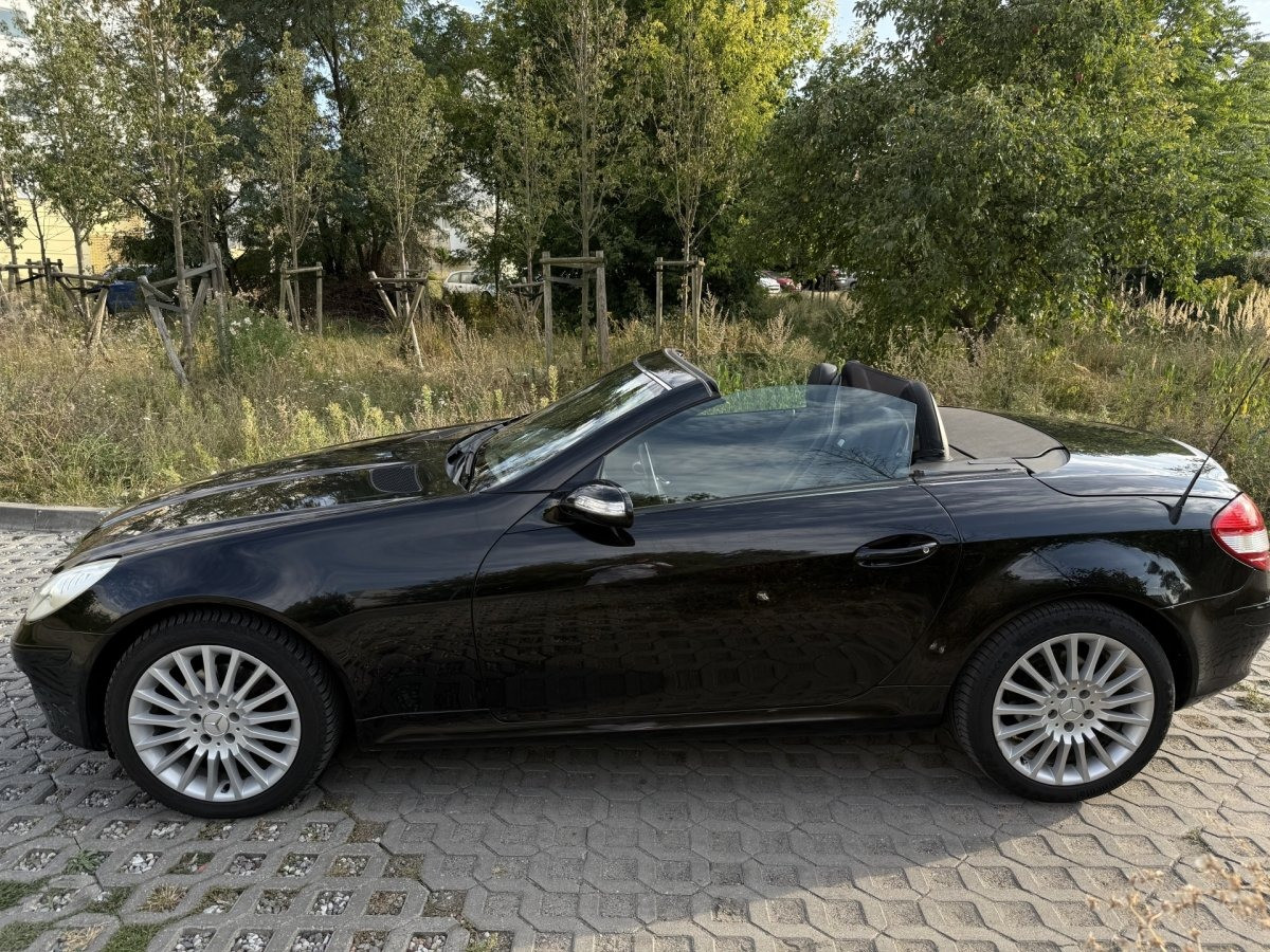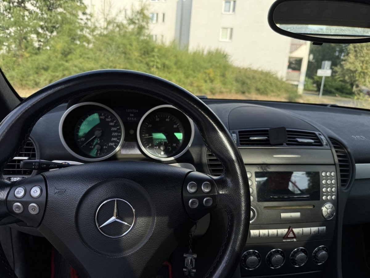 Zadbany, bezrdzewny kabriolet Mercedes SLK 200 Kompressor — gotowy do jazdy, dach otwiera się i zamyka bez problemu. Idealny dla miłośnika klasycznych roadsterów, który chce bezawaryjnego auta do przyjemnej jazdy.
