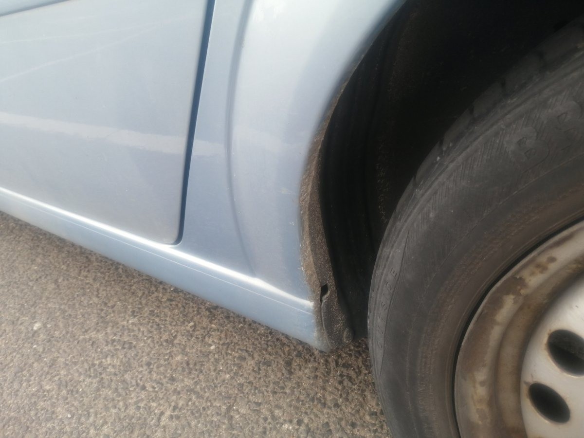 Ostatnie 3 zdjęcia pokazują uszkodzenia kolejno: rysa (płytka, nie powinna rdzewieć w przyszłości), wgniecenie (minimalne, mało widoczne, nie rdzewieje od lat), rdza na nadkolu (uważam, ze na ten wiek blachy trzymają się dobrze).