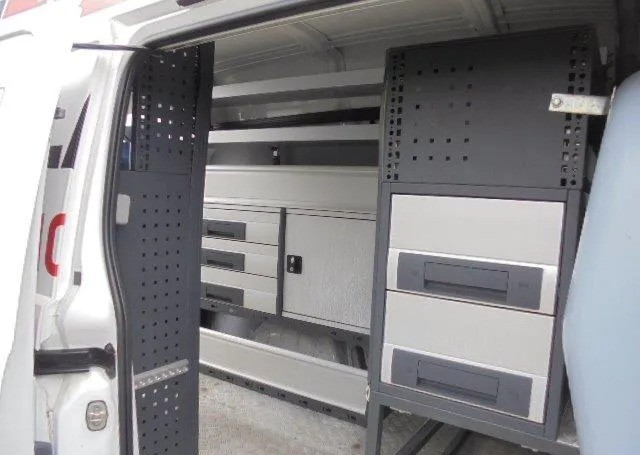 - specjalistyczna zabudowa serwisowa (szafki, szuflady, blaty, imadło, podajnik do wody, oświetlenie serwisowe)