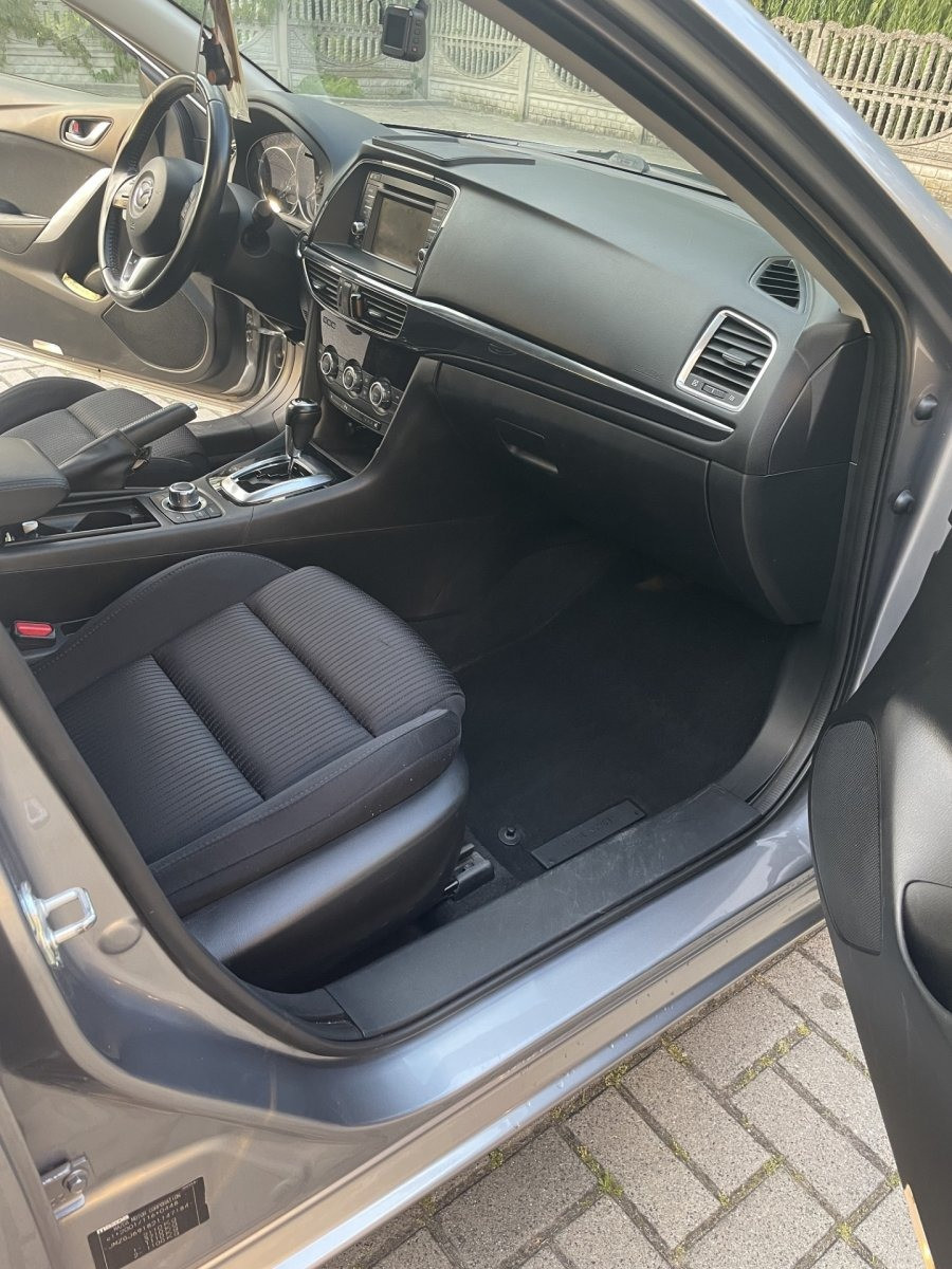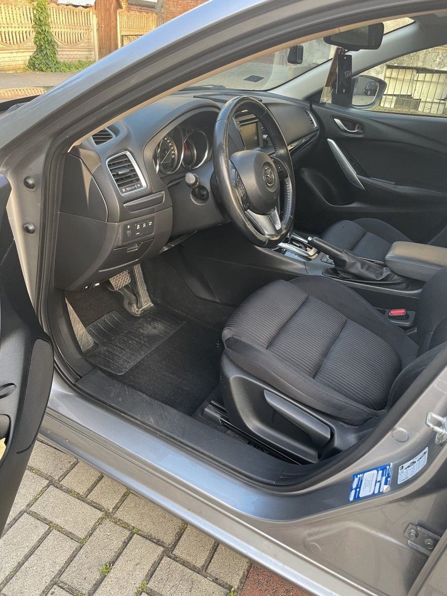 Mazda 6 Skyactiv 2013r., 2,2 diesel, automatyczna skrzynia biegów, czujniki parkowania przód i tył, podgrzewane przednie fotele, system start stop z możliwością wyłączenia przyciskiem, klimatyzacja dwustrefowa, przednie lampy przyciemniane, auto garażowane i zadbane. Dodadtkowo komplet opon zimowych oraz zamontowana kamerka samochodowa.