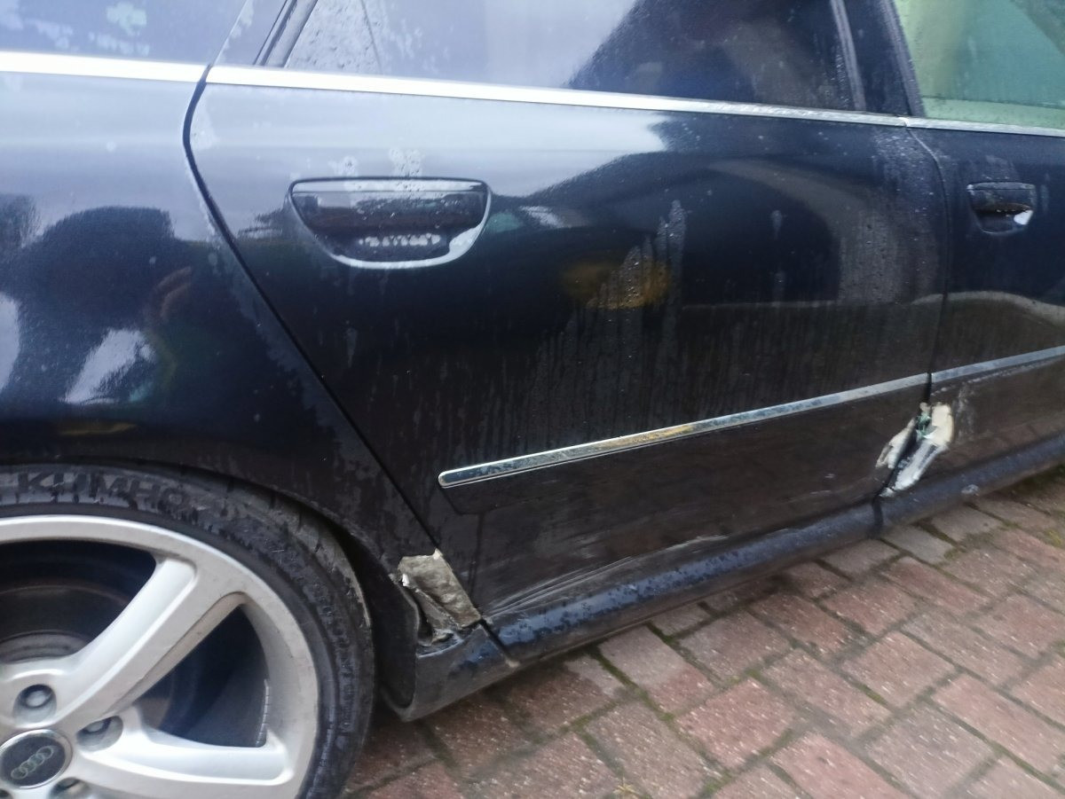 - drzwi przód , tył , element nadkola tył prawy , połamaną felga tył prawy ( lezy w bagażniku) 20', zderzak tył prawy wahacz tyl ( tuleja do wymiany).