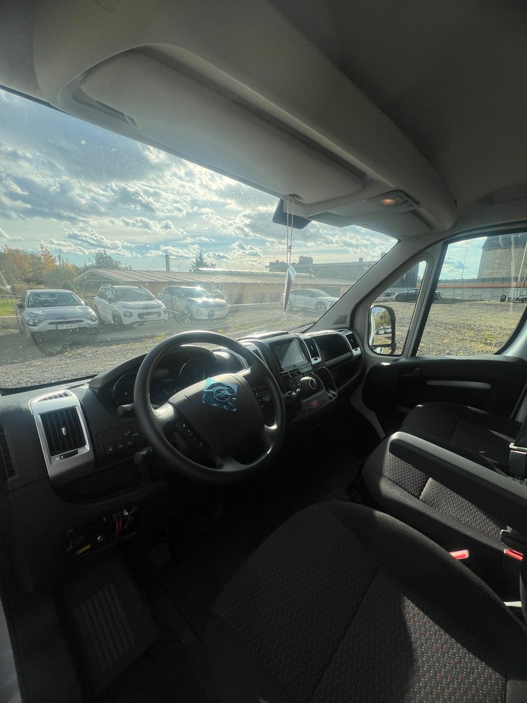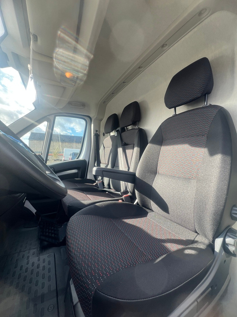 • Pakiet siedzeń PODSTAWOWY; Fotel kierowcy: manualna regulacja wzdłużna, pochylenia oparcia i wysokości; Ławka 2-osobowa (bez stolika do pisania)