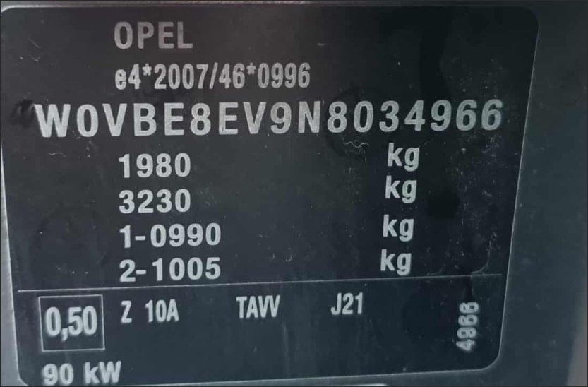 | VIN: | W0VBE8EV9N8034966 |