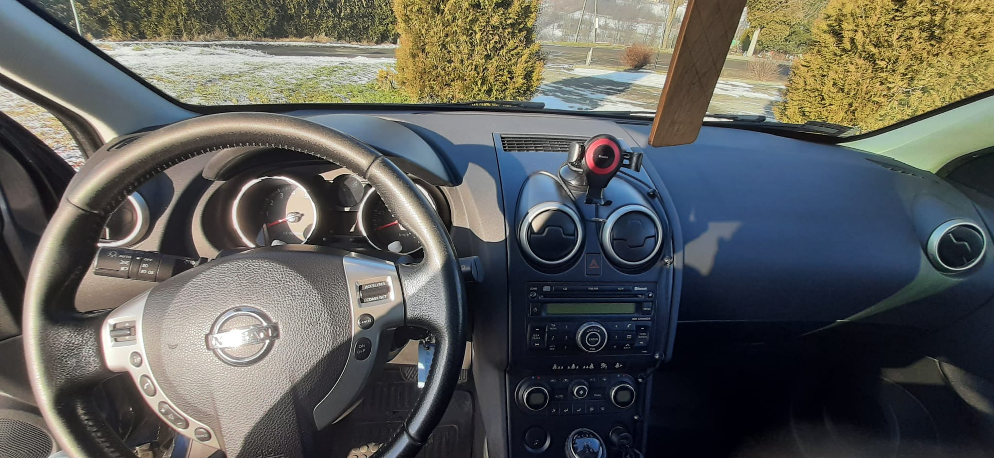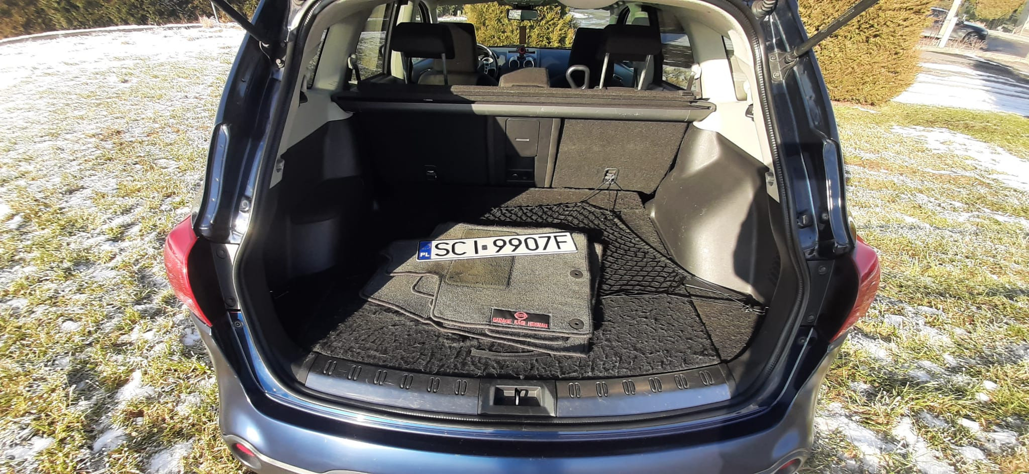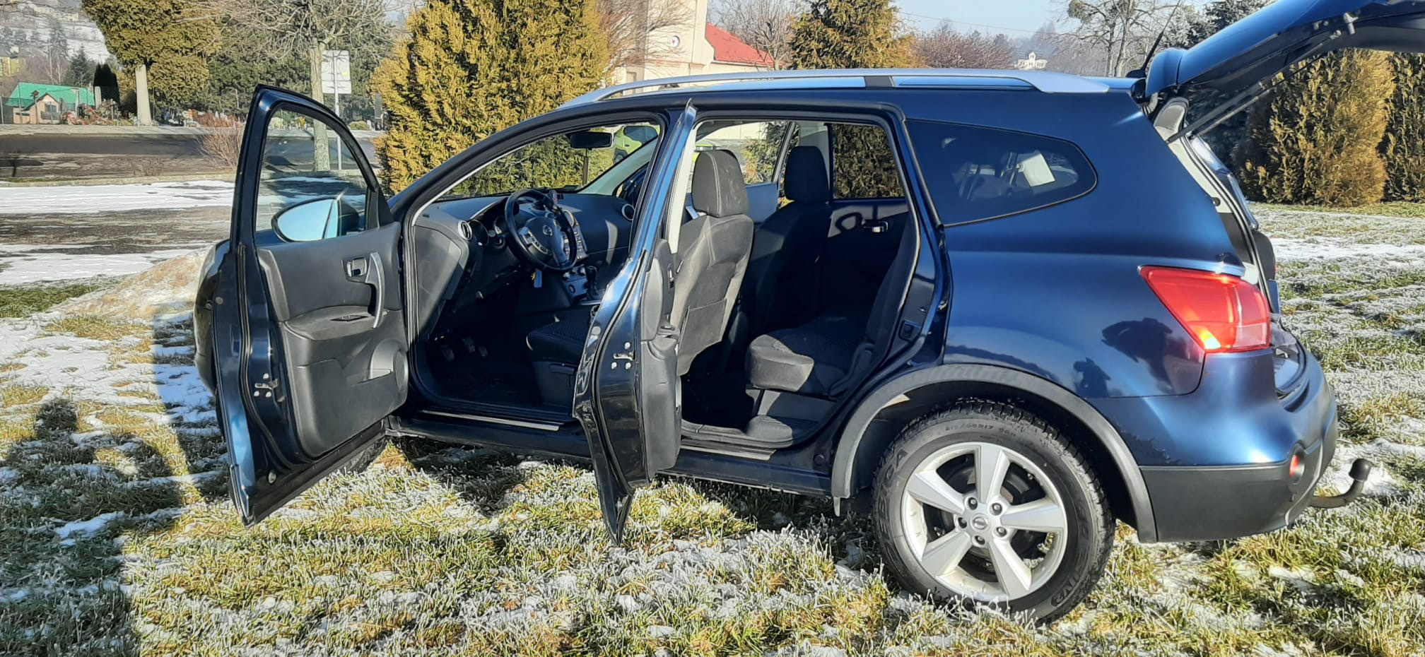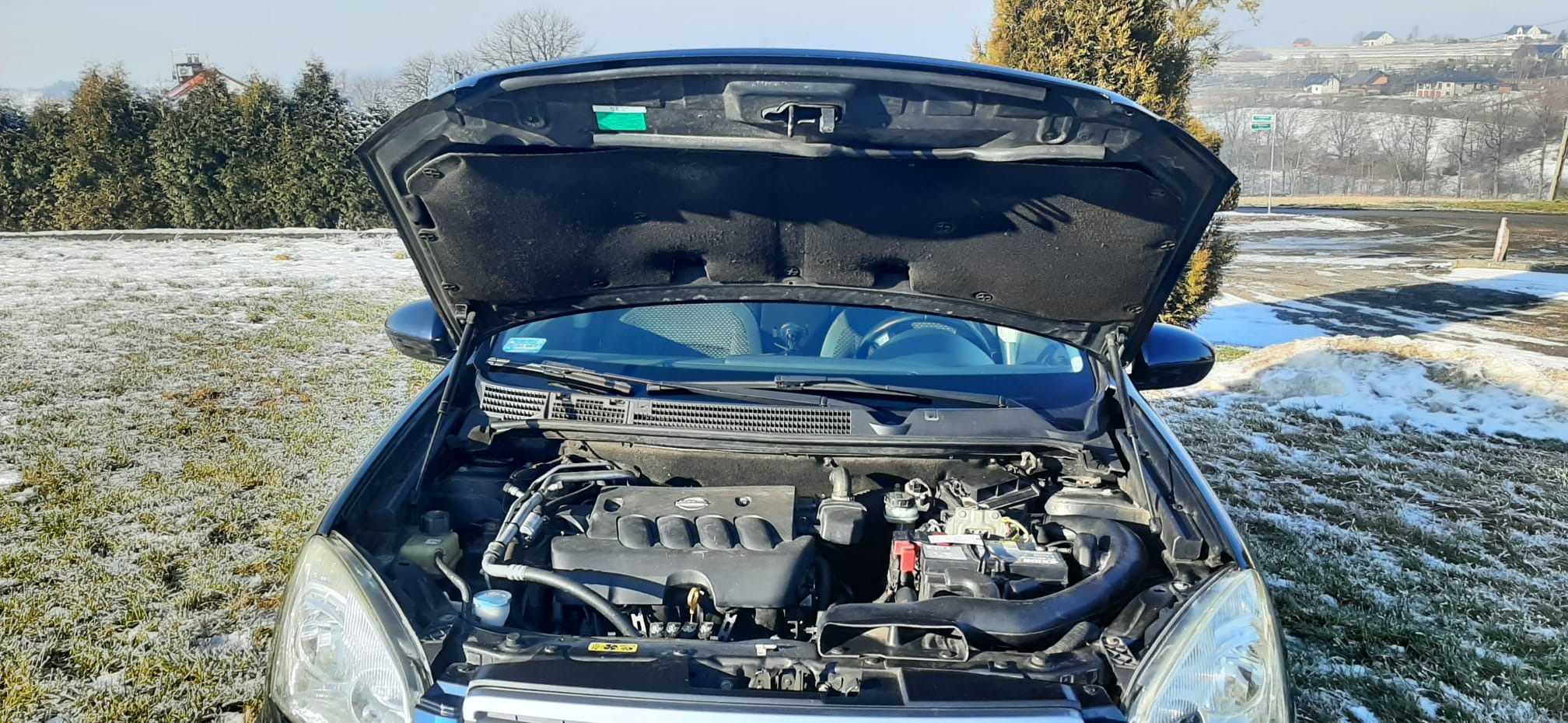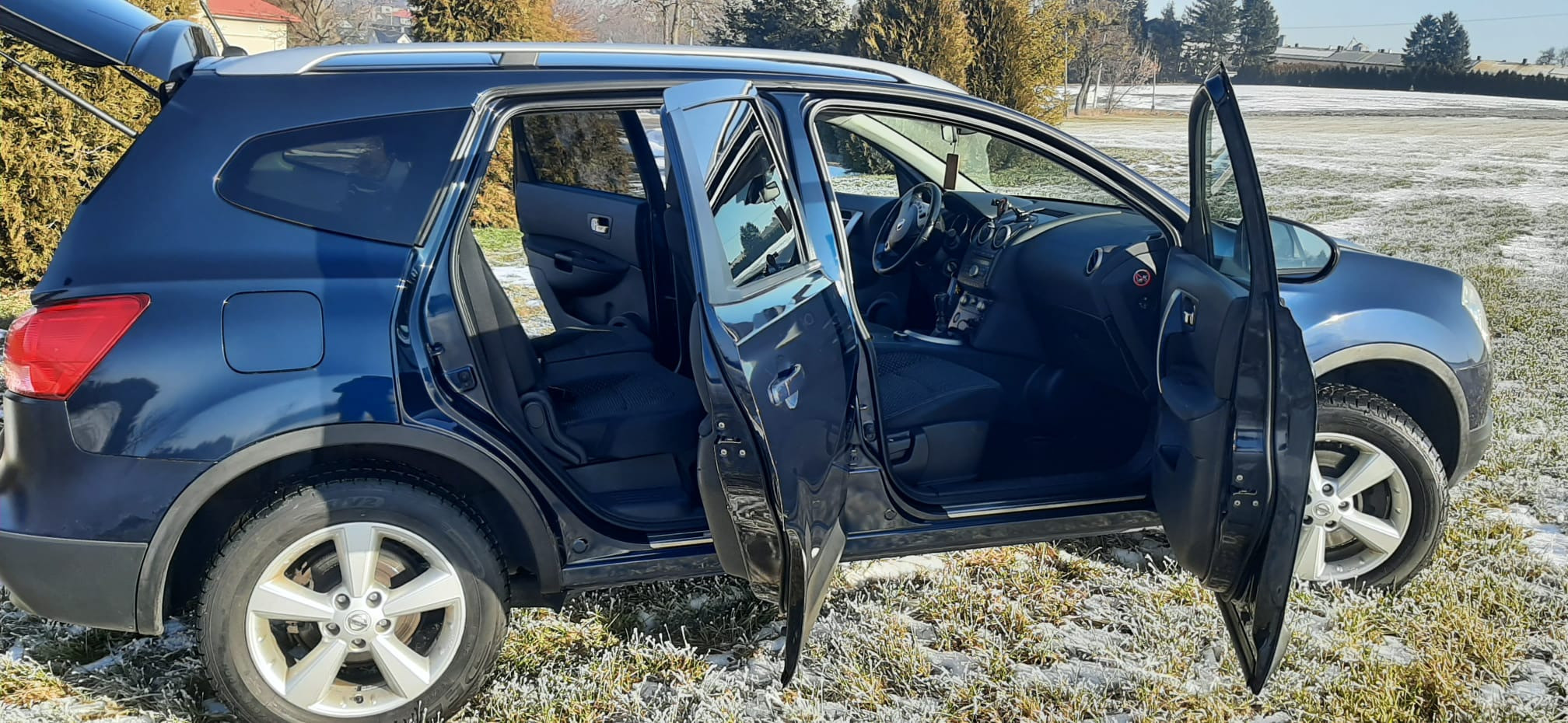 Auto w pełni sprawne, jest w ciągłej eksploatacji, podwozie zostało po zakupie zakonserwowane (w trakcie użytkowania oczywiście z poprawkami), akumulator kupiony rok temu. Na oryginalnych Nissanowskich felgach (17’) założone nowe opony zimowe Dębica Frigo SUV2. Samochód zadbany, czysty, nigdy nie palono w nim papierosów. Z tyłu 2x fabryczne mocowania fotelika dziecięcego ISOFIX, tylne drzwi posiadają dodatkową blokadę rodzicielską uniemożliwiającą samodzielne otwarcie drzwi przez dziecko. Wszystkie szyby w drzwiach sterowane elektrycznie z możliwością zablokowania poszczególnych szyb przez kierowcę. Lusterka boczne regulowane i składane elektrycznie. Fabryczne czujniki cofania, automatyczna, dwustrefowa klimatyzacja, fabrycznie przyciemnione szkło szyb w tylnych drzwiach, światła włączane automatycznie (czujnik zmierzchu), czujnik deszczu włączający wycieraczki, tempomat, pokrywa silnika otwierana mocnymi amortyzatorami (akcesoryjne), nakładki ze stali nierdzewnej na progach oraz na tylnej blendzie pokrywy bagażnika, dodatkowe gniazda zasilania 12V, wielofunkcyjna kierownica (obsługa radia, telefonu, tempomatu), radio z bluetooth i wejściem aux.