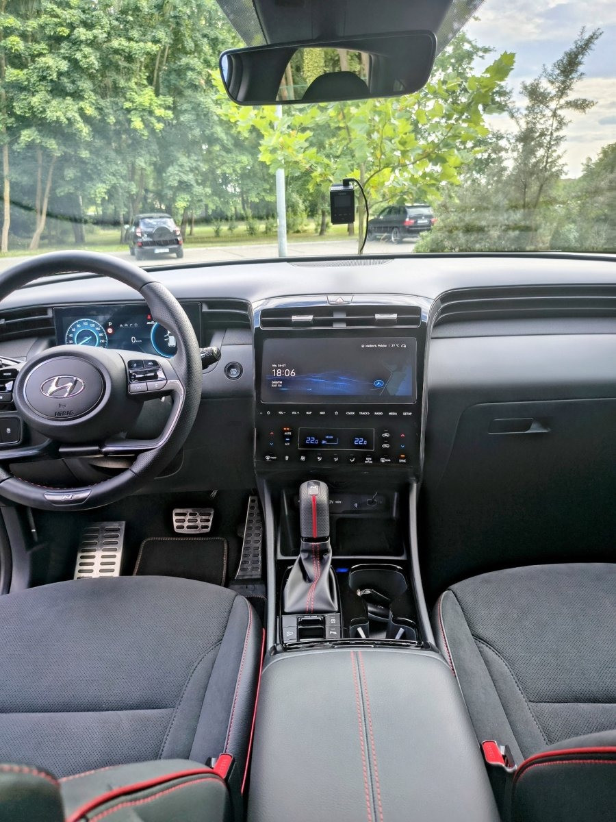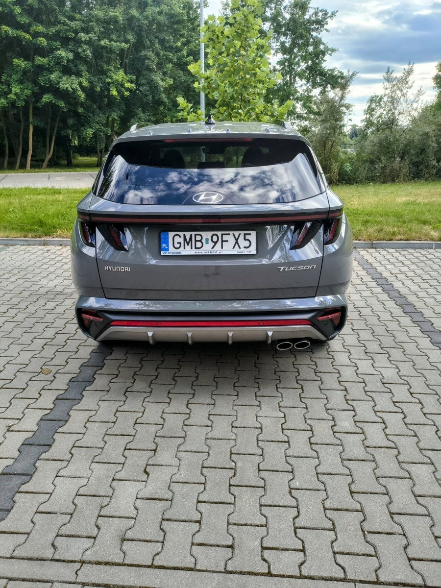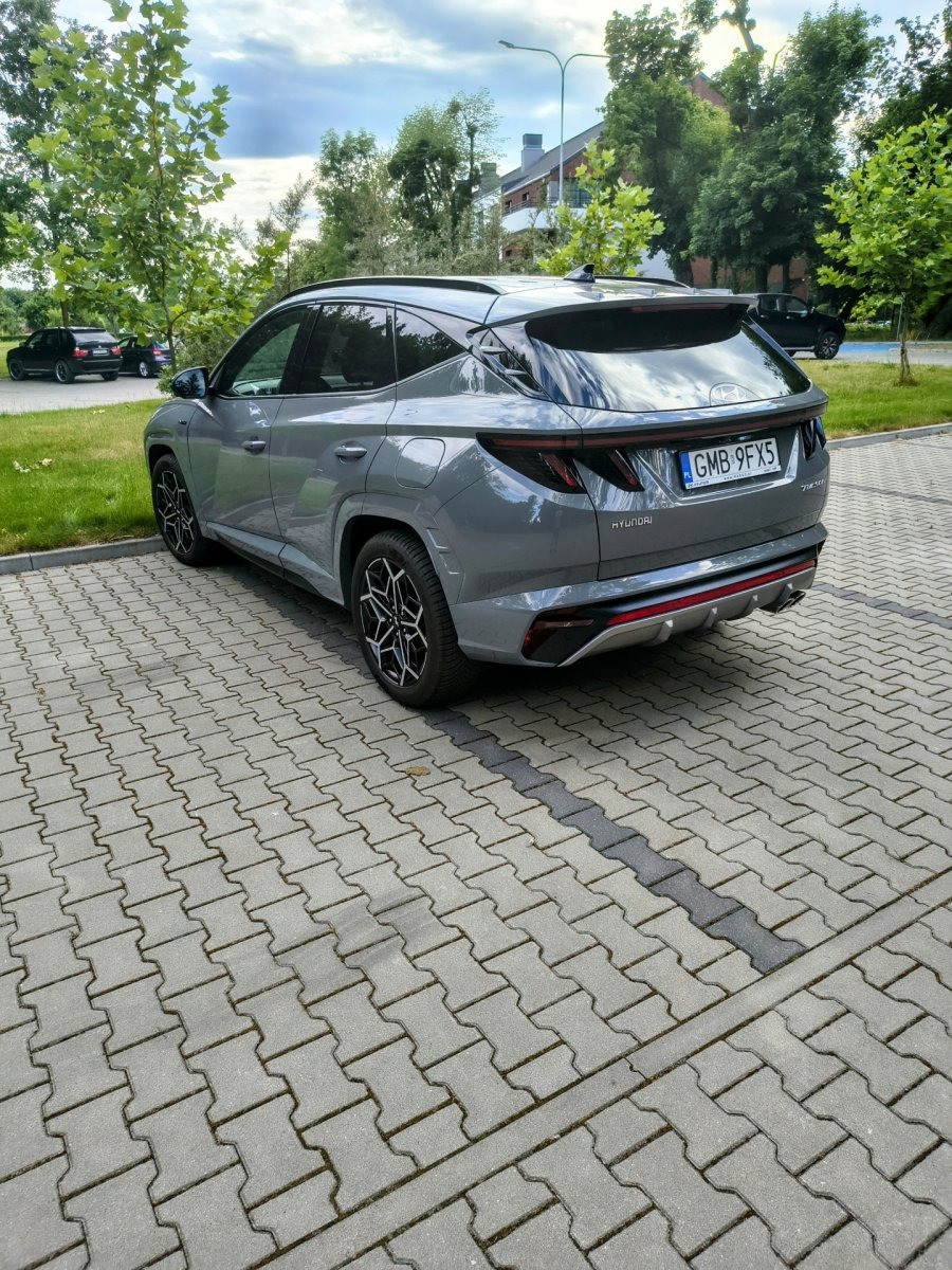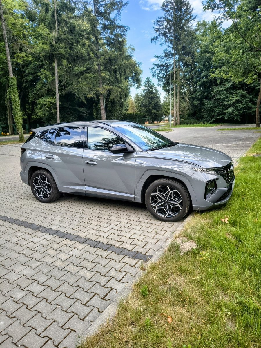 Posiadam do sprzedania Hyundai Tucson N-line Luxury w bardzo dobrym stanie z bardzo małym przebiegiem wynoszącym 4980 km. Ponadto samochód posiada ceramikę i oklejone elementy folią PPF, opony wielosezonowe Goodyear, dodatkowe zabezpieczenie, a łączny koszt dodatków był równy około 10 000 zł. Auto jest w pięknym kolorze Shadow gray.